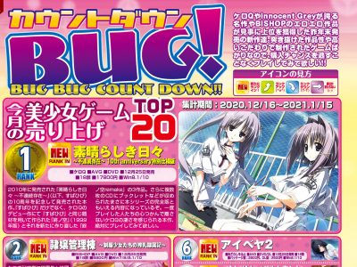 HOME > アンケート アンケート 【BugBug】「この春から始めたい、やりたいことは?」 7月号掲載の美少女ゲーム売上げランキング&5月号で募集した読者アンケート結果を大発表!! 2021/6/30 【B-mail】「電子媒体でもいいのでいつか「オレたち太陽族」をまとめて欲しい」 BugBug5月号の読者アンケートハガキに書かれたコメントを大紹介 2021/6/6 【BugBug】「美少女ゲームを購入する際に重視している要素は?」 6月号掲載の美少女ゲーム売上げランキング&4月号で募集した読者アンケート結果を大発表!! 2021/6/1 【B-mail】超待望!! 読者からの美少女ゲームイラストが盛り沢山!! BugBug4月号の読者アンケートハガキに書かれたコメントを大紹介 2021/5/3 【BugBug】「ゲームについていて一番うれしい特典は?」 5月号掲載の美少女ゲーム売上げランキング& 3月号で募集した読者アンケート結果を大発表!! 2021/4/29 【B-mail】「表紙と裏表紙、どっちもエロいと買う時ちょっととまどうね(笑)」 BugBug3月号の読者アンケートハガキに書かれたコメントを大紹介 2021/4/4 【BugBug】「2020年あなたの心に残ったニュースは?」 4月号掲載の美少女ゲーム売上げランキング& 2月号で募集した読者アンケート結果を大発表!! 2021/4/1 【B-mail】「処分予定のフィギュアメーカーから送られてきたフィギュアが福袋に入っていますように」 BugBug2月号の読者アンケートハガキを大紹介!! 2021/2/28 【BugBug】あなたがプレイしたい過去の名作は? 3月号掲載の美少女ゲーム売上げランキング& 1月号で募集した読者アンケート結果を大発表!! 2021/2/27 【BugBug】あなたが注目している若手ブランドは? 2月号掲載の美少女ゲーム売上げランキング& 12月号で募集した読者アンケート結果を大発表!! 2021/2/2 【B-mail】『同級生』もいいけど『天使たちの午後』シリーズも復刻してほしい!? BugBug1月号の読者アンケートハガキに書かれたコメントを大紹介 2021/2/1 【B-mail】2020年最後のシメ記事は編集部の3人が登場!! ネットで復活した本誌の名物読者コーナーで12月号の読者ハガキに書かれたコメントを大紹介 2020/12/31 【BugBug】あなたが好きなアニメは? 1月号掲載の美少女ゲーム売上げランキング& 11月号で募集した読者アンケート結果を大発表!! 2020/12/26 【BugBug】好きなキャラクターランキングで15年間1位に君臨していたセイバーがまさかの2位陥落!! 替わりに1位になったのはあのギャル系癒しヒロイン 2020/11/30 【B-mail】「男の娘やモンスター娘の出てくる作品をどんどんピックアップして」 BugBug本誌の名物読者コーナーが「BugBug.NEWS」で大復活!! 2020/11/29 【B-mail】本誌の名物読者コーナーが「BugBug.NEWS」で帰って来た!! 10月号の読者ハガキに書かれたコメントを大紹介♪ 2020/10/31 【BugBug】あなたが好きなエロのジャンルは? 11月号掲載の美少女ゲーム売上げランキング& 9月号で募集した読者アンケート結果を大紹介!! 2020/10/31 【BugBug】「あなたがこの夏にやりたいことは?」「美しょゲーを購入する際に参考にする情報は?」 9月号&10月号掲載のランキング&アンケート結果をまとめて紹介!! 2020/10/6 【B-mail】BugBug本誌の読者コーナーが「BugBug.NEWS」で復活!! 9月号の読者ハガキのコメントを大紹介!! 2020/9/27 【B-mail】BugBug本誌の名物読者コーナーが「BugBug.NEWS」で復活!! 8月号の読者アンケートハガキに書かれた内容は? 2020/8/30 « Prev 1 … 3 4 5 6 Next »